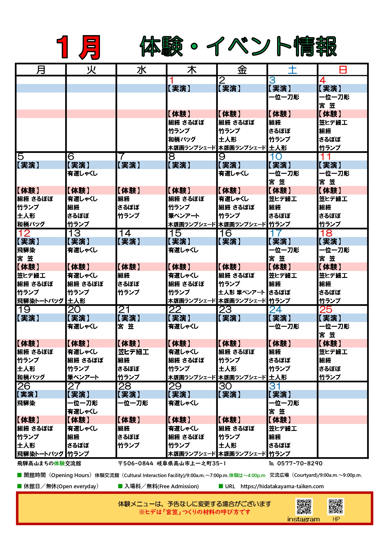 飛騨高山まちの体験交流館では、年始も1日からみなさまのお越しをお待ちしております。
