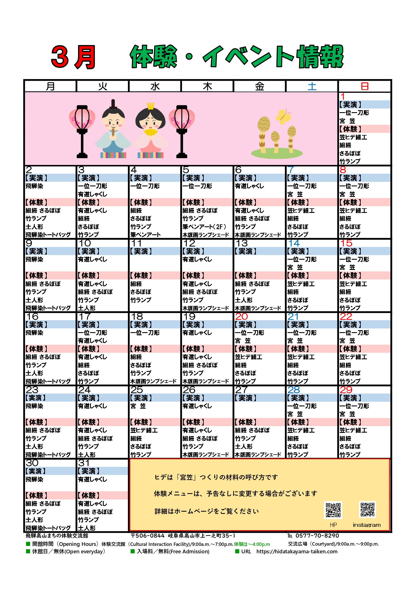 さて、3月の体験情報ができましたので、お知らせいたします。